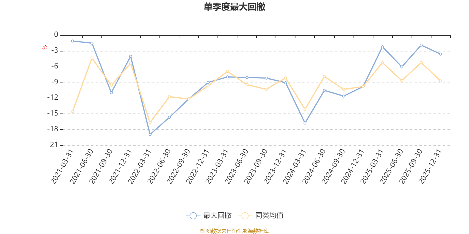 截至1月22日,基金近三年最大回撤为33.27%,同类可比基金排名653/1264。单季度最大回撤出现在2022年一季度,为18.95%。