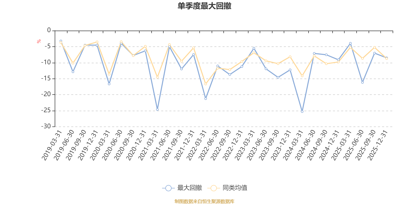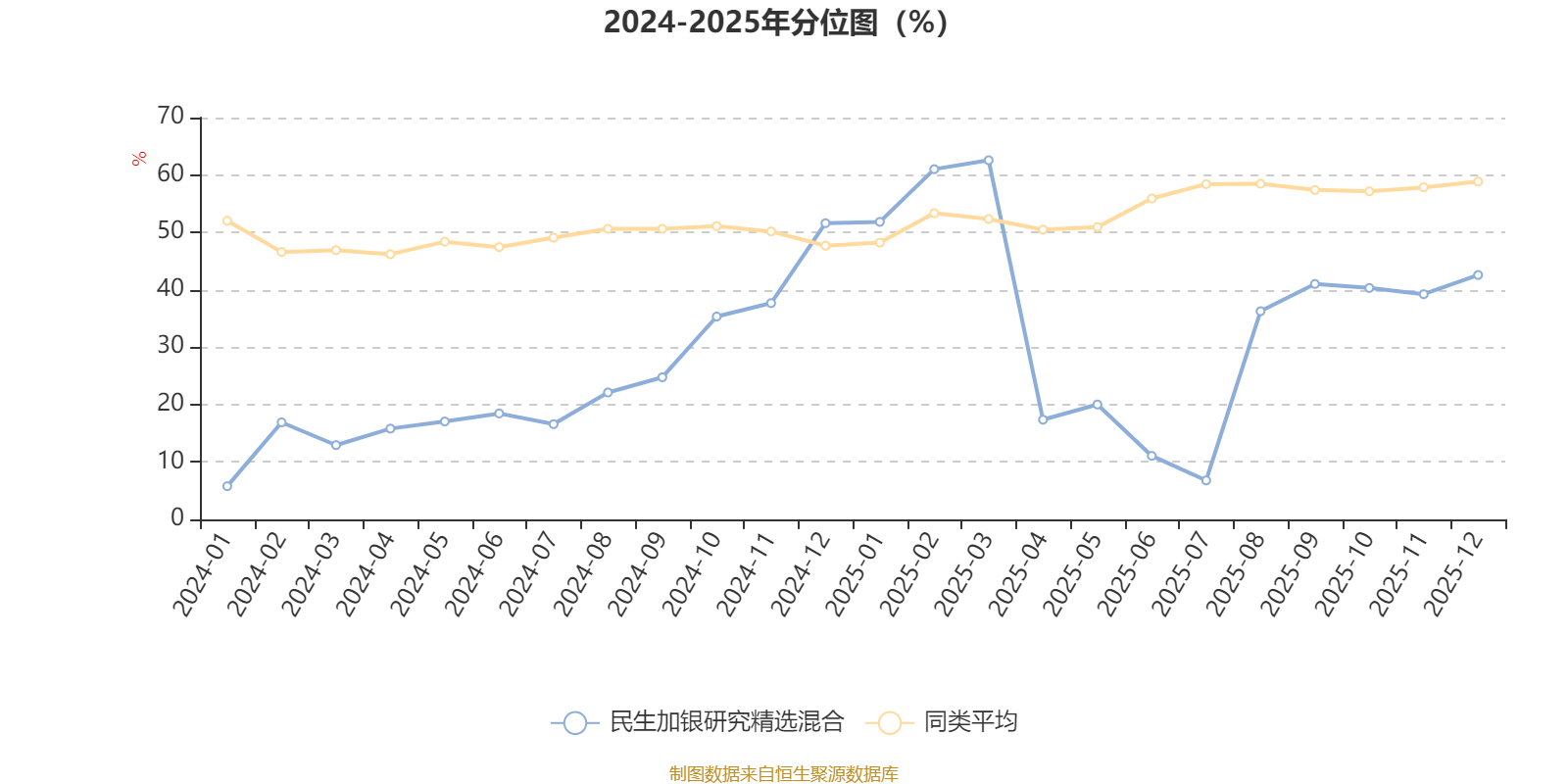 通过所选区间该基金净值增长率分位图,可以观察该基金与同类基金业绩比较情况。图为坐标原点到区间内某时点的净值增长率在同类基金中的分位数。