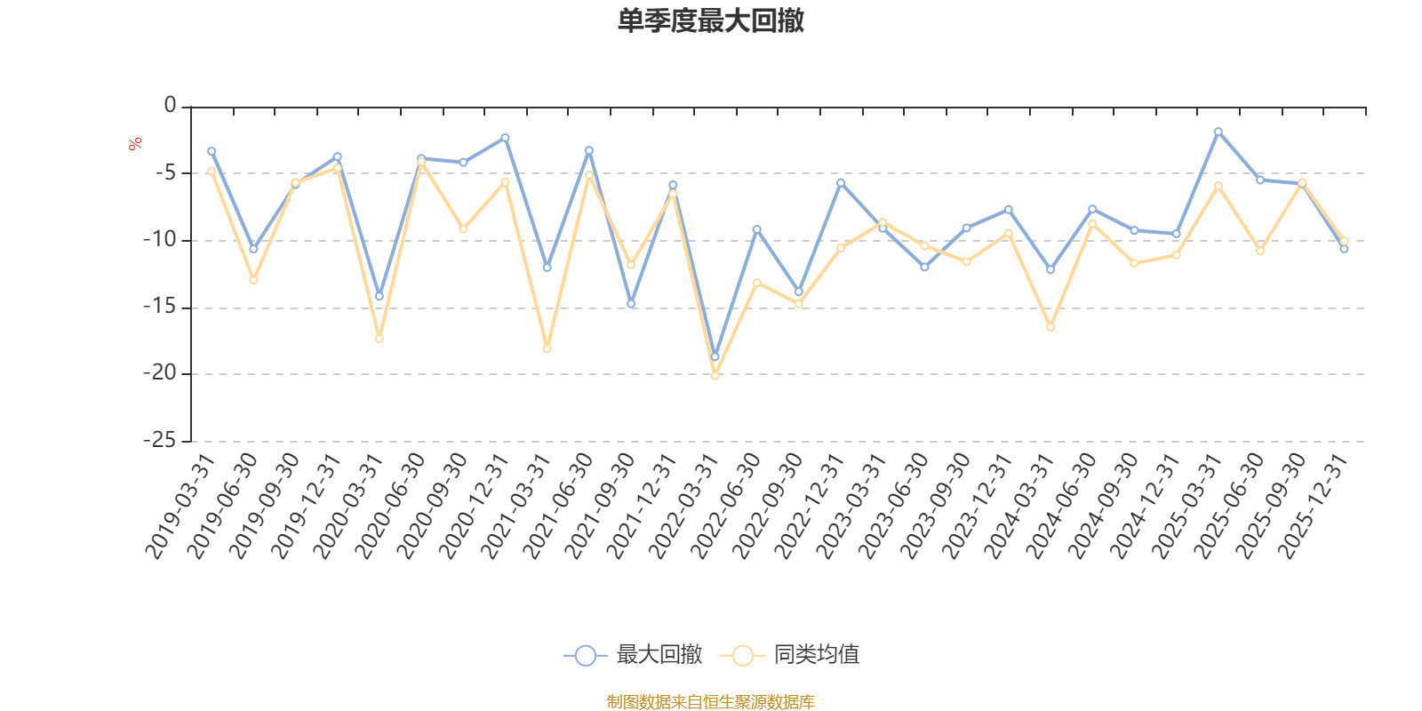 通过所选区间该基金净值增长率分位图,可以观察该基金与同类基金业绩比较情况。图为坐标原点到区间内某时点的净值增长率在同类基金中的分位数。