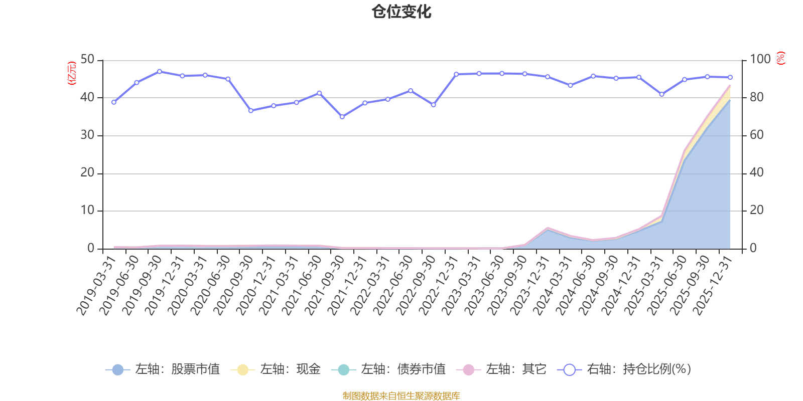 据定期报告数据统计,近三年平均股票仓位为90.27%,同类平均为87.64%。2019年三季度末基金达到93.98%的最高仓位,2021年三季度末最低,为70%。
