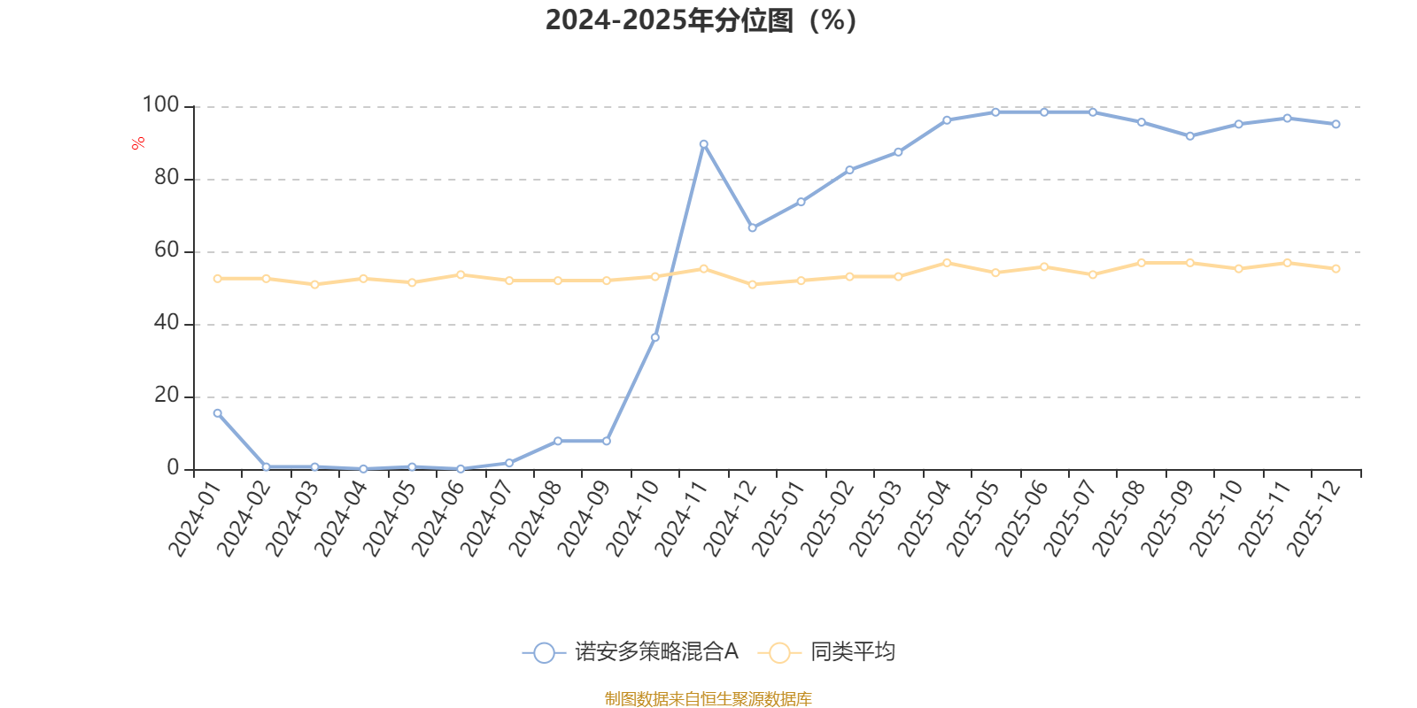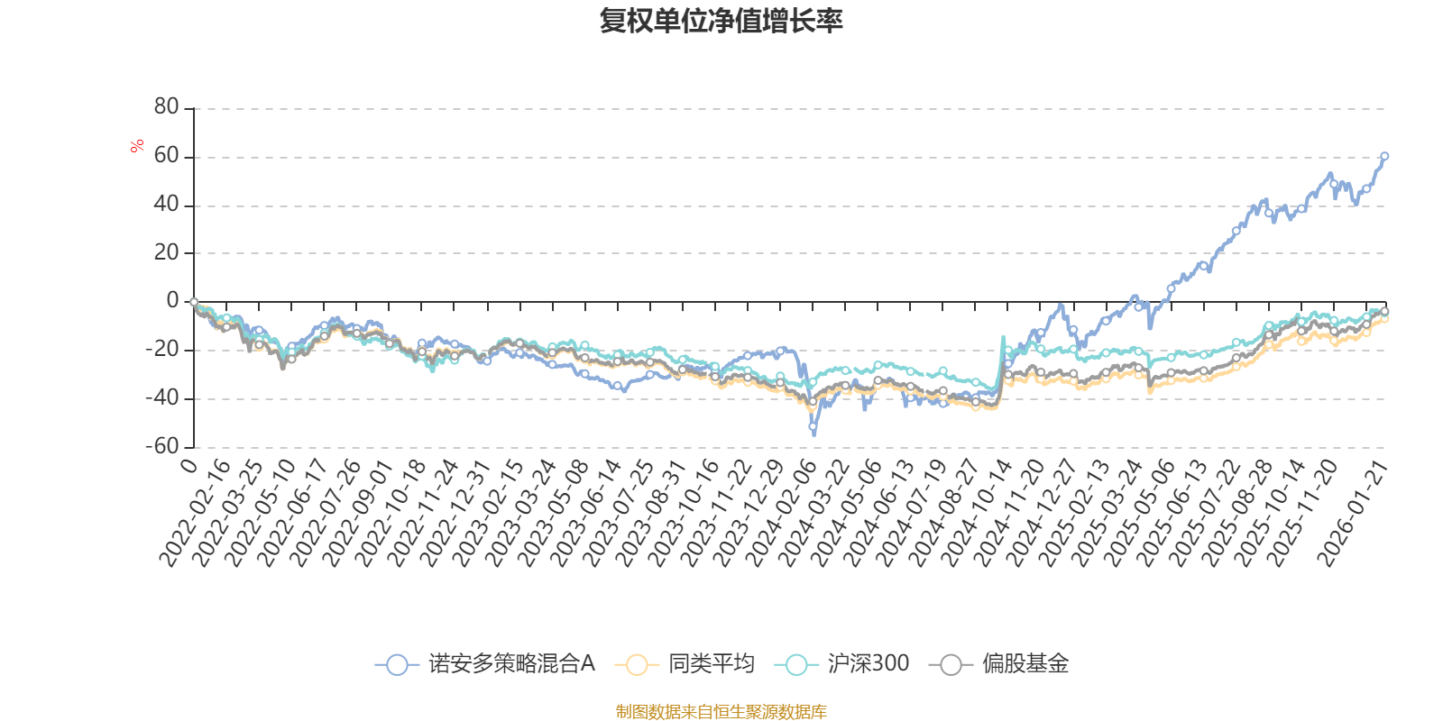 截至1月21日,诺安多策略混合A近三个月复权单位净值增长率为12.13%,位于同类可比基金47/185;近半年复权单位净值增长率为23.88%,位于同类可比基金95/185;近一年复权单位净值增长率为83.55%,位于同类可比基金7/183;近三年复权单位净值增长率为98.30%,位于同类可比基金2/176。