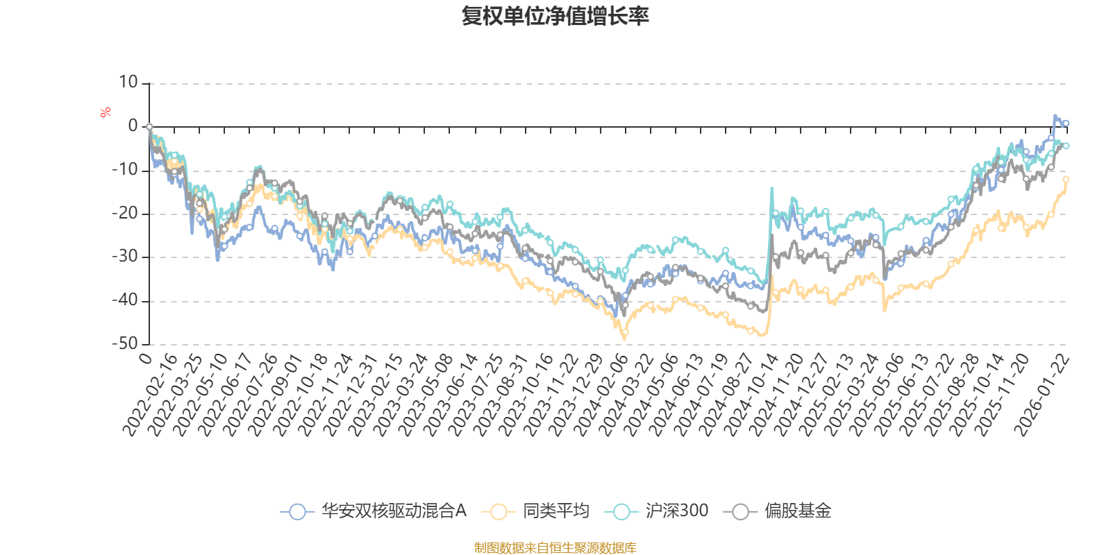 截至1月22日,华安双核驱动混合A近三个月复权单位净值增长率为9.37%,位于同类可比基金324/689;近半年复权单位净值增长率为26.17%,位于同类可比基金305/689;近一年复权单位净值增长率为36.45%,位于同类可比基金339/673;近三年复权单位净值增长率为26.31%,位于同类可比基金133/396。