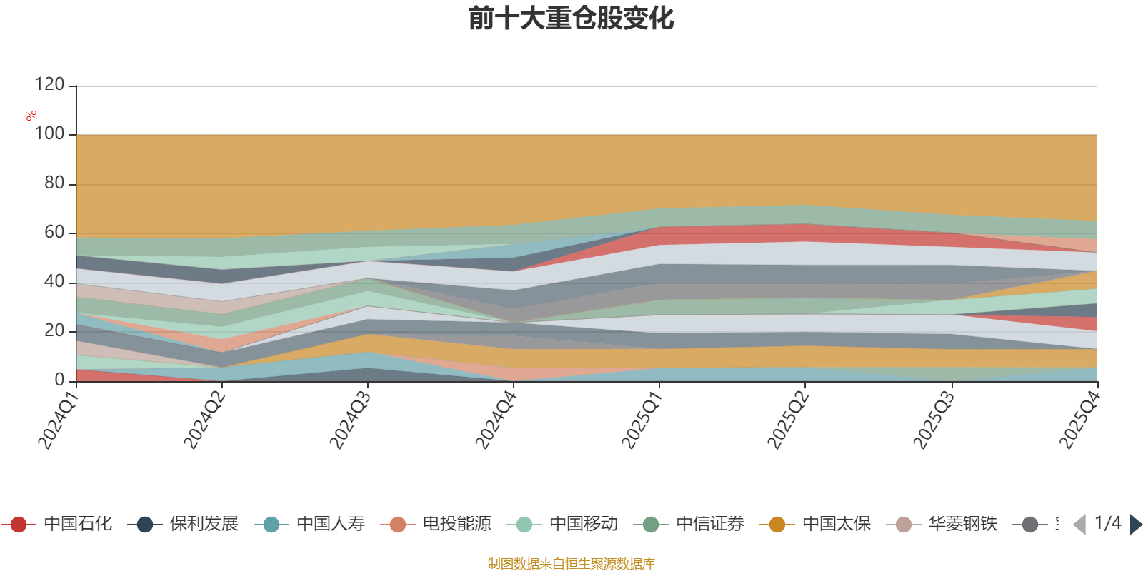 该基金持股集中度较高。截至2025年四季度末,基金十大重仓股分别是中国太保、中国人保、中国船舶、中国银河、美的集团、华泰证券、中国平安、中国人寿、南方航空、宝丰能源。