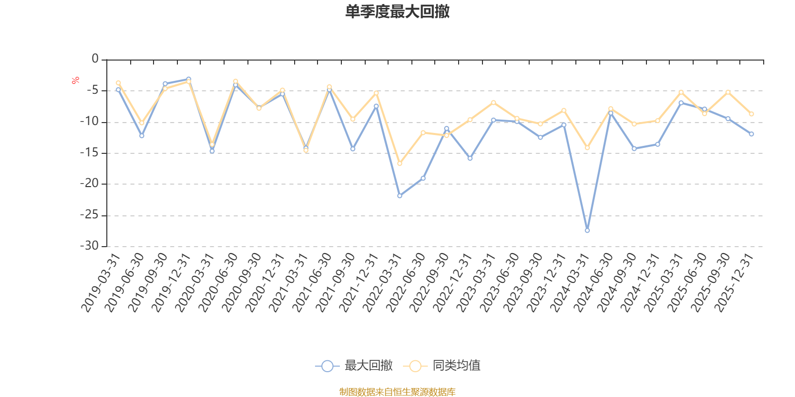 通过所选区间该基金净值增长率分位图,可以观察该基金与同类基金业绩比较情况。图为坐标原点到区间内某时点的净值增长率在同类基金中的分位数。