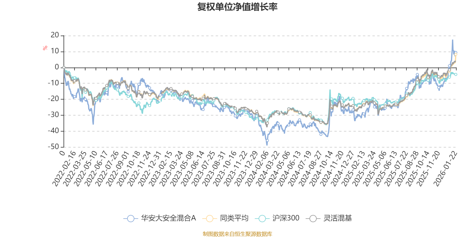 截至1月22日,华安大安全混合A近三个月复权单位净值增长率为21.47%,位于同类可比基金93/1286;近半年复权单位净值增长率为25.90%,位于同类可比基金526/1286;近一年复权单位净值增长率为57.51%,位于同类可比基金228/1286;近三年复权单位净值增长率为29.15%,位于同类可比基金391/1286。