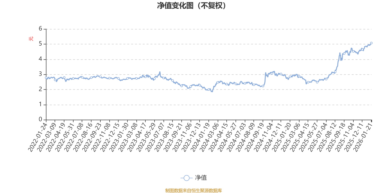 该基金持股集中度较高,近2年前十大重仓股集中度长期超过60%。截至2025年四季度末,基金十大重仓股分别是兆易创新、新易盛、中际旭创、中国中免、天孚通信、海光信息、荃银高科、巨人网络、中金黄金、潞安环能。