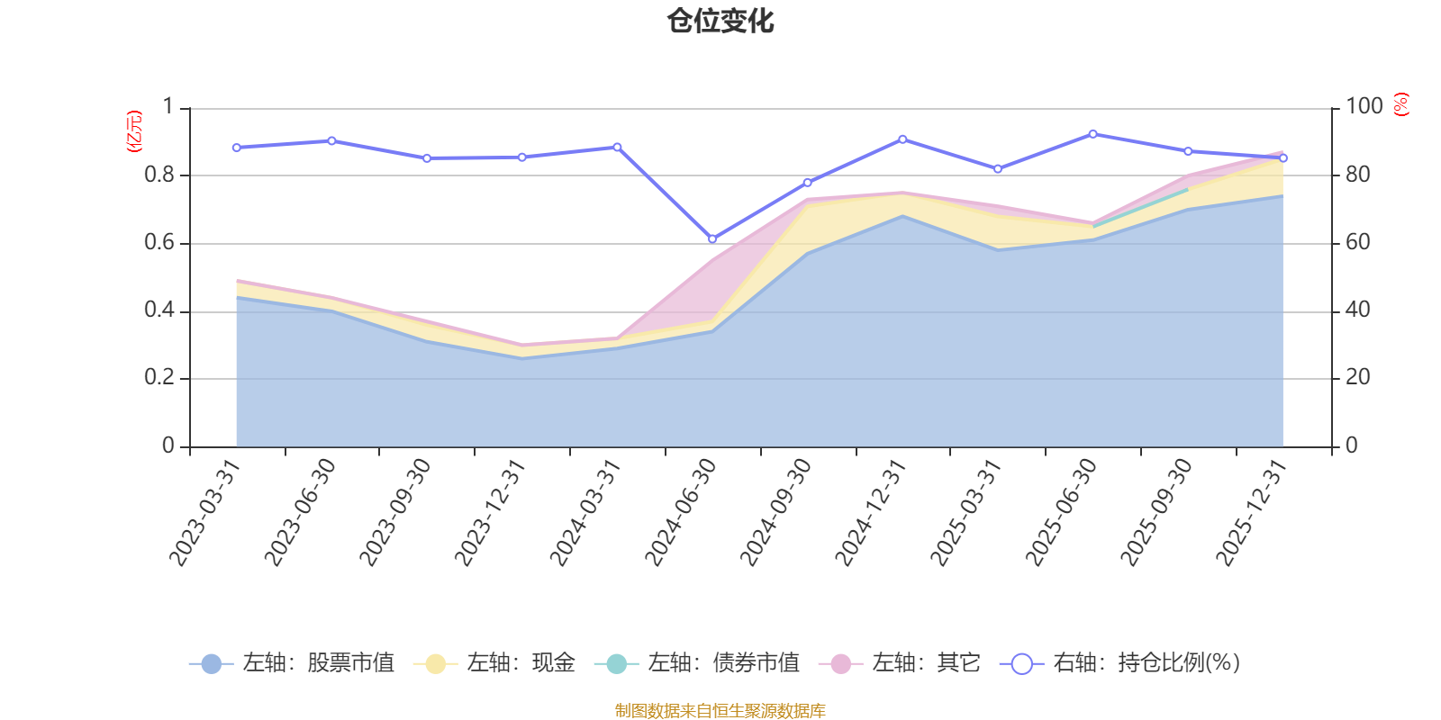据定期报告数据统计,近三年平均股票仓位为84.55%,同类平均为84.04%。2025年上半年末基金达到92.33%的最高仓位,2024年上半年末最低,为61.35%。
