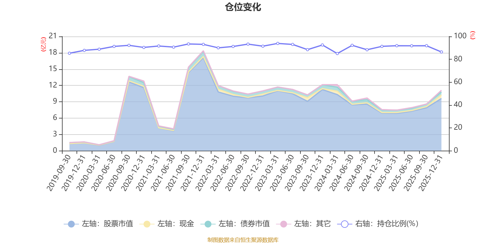 基金管理人在四季报中表示,展望2026年,在流动性宽松与政策持续发力的背景下,我们认为成长风格或将延续。三方面来看,1)短期维度,股市下跌阻性较强,险资理财等机构加速明年布局。2)中期维度,春季躁动窗口已开启,当前正值政策密集期与流动性宽松期共振,反内卷与科技创新政策主线清晰。重点布局AI应用、机器人、创新药等高弹性方向。3)长期维度,低利率环境持续为权益资产提供估值上行动力,成长风格迎戴维斯双击。微观层面,险资、私募等中长线资金加速流入,居民资产配置向权益迁移趋势不改。在资金面与基本面双重支撑下,此轮行情或将延续,当前正是长期资金布局优质资产的黄金窗口。