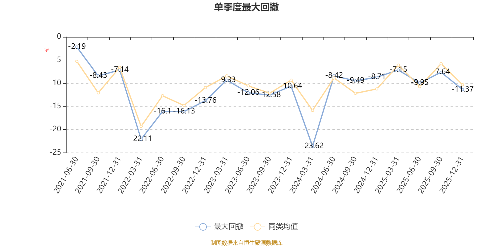 截至1月21日,基金近三年最大回撤为38.79%,同类可比基金排名215/378。单季度最大回撤出现在2024年一季度,为23.62%。