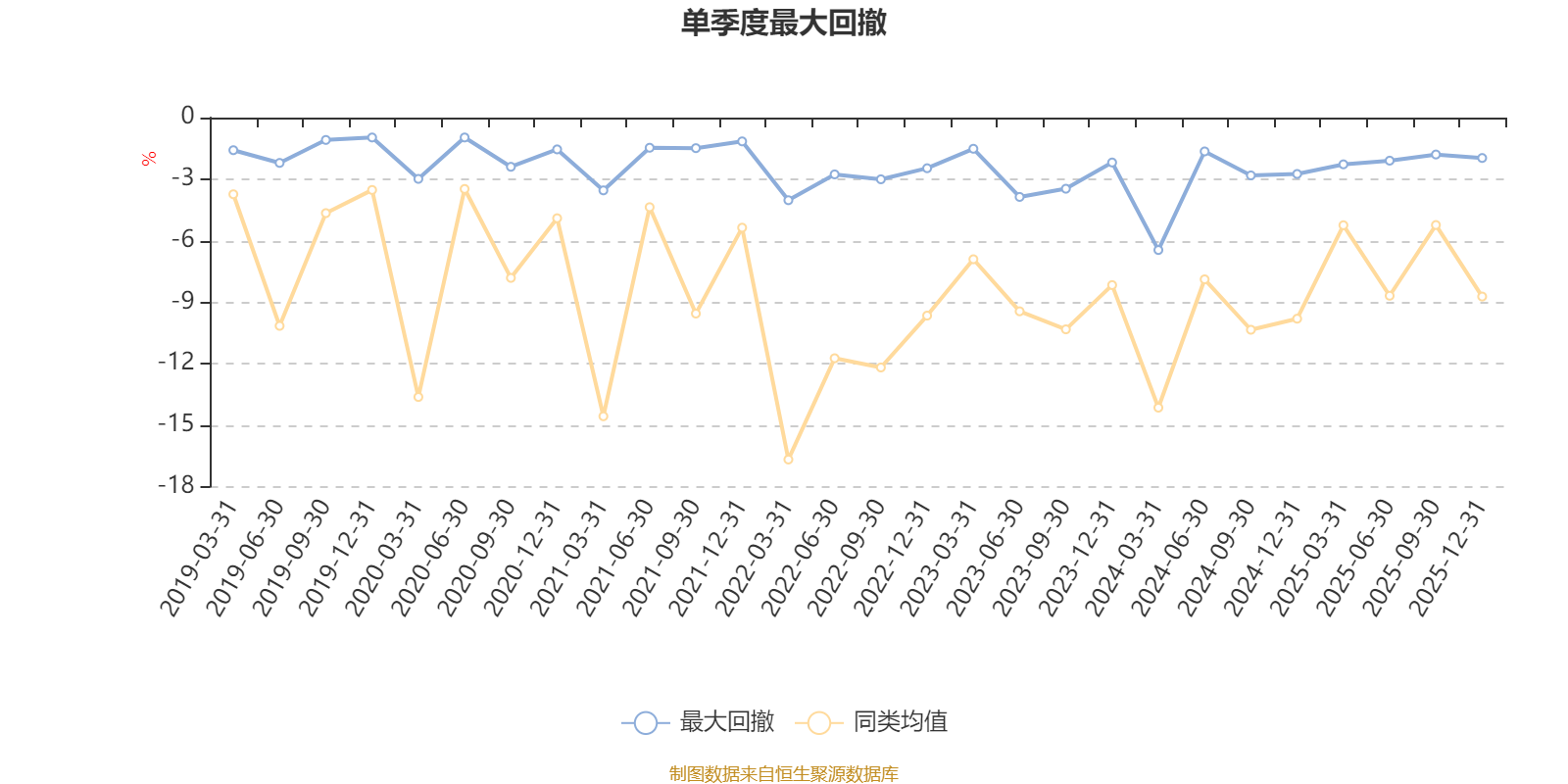 通过所选区间该基金净值增长率分位图,可以观察该基金与同类基金业绩比较情况。图为坐标原点到区间内某时点的净值增长率在同类基金中的分位数。