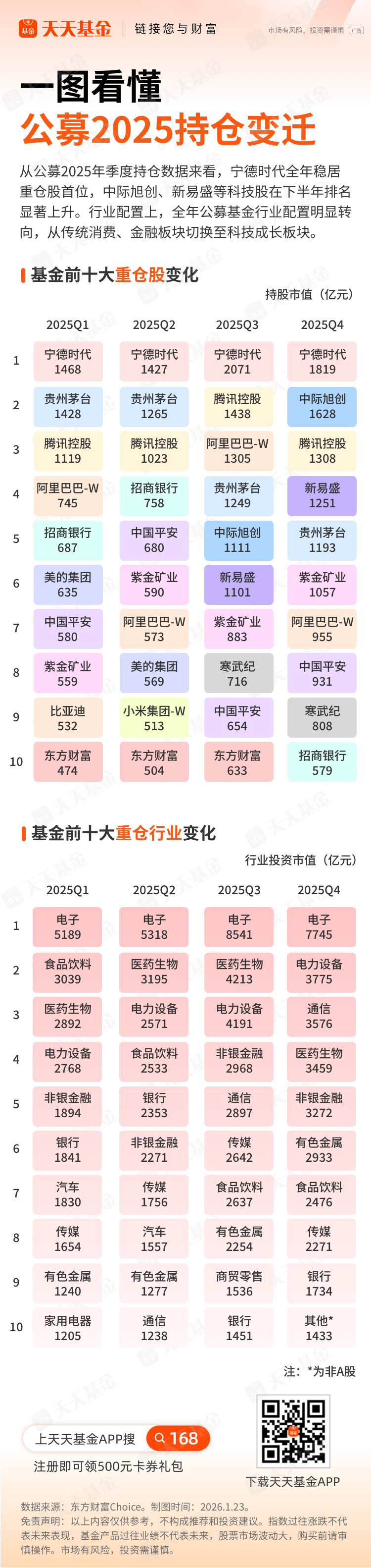 公募基金2025年四季报已基本披露完毕。作为管理规模超37万亿元的“超级主力”,其持仓变化提供了重要的参考与借鉴,成为投资者关注的焦点。