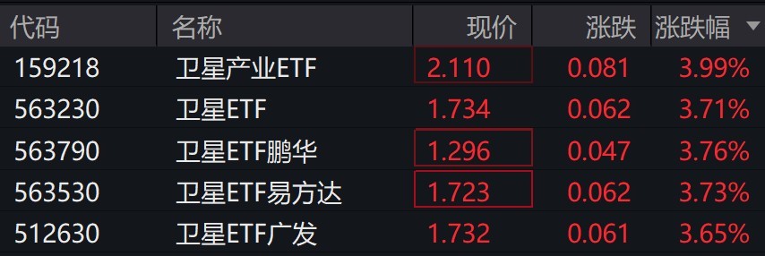 受盘面影响,卫星相关ETF涨超3%。