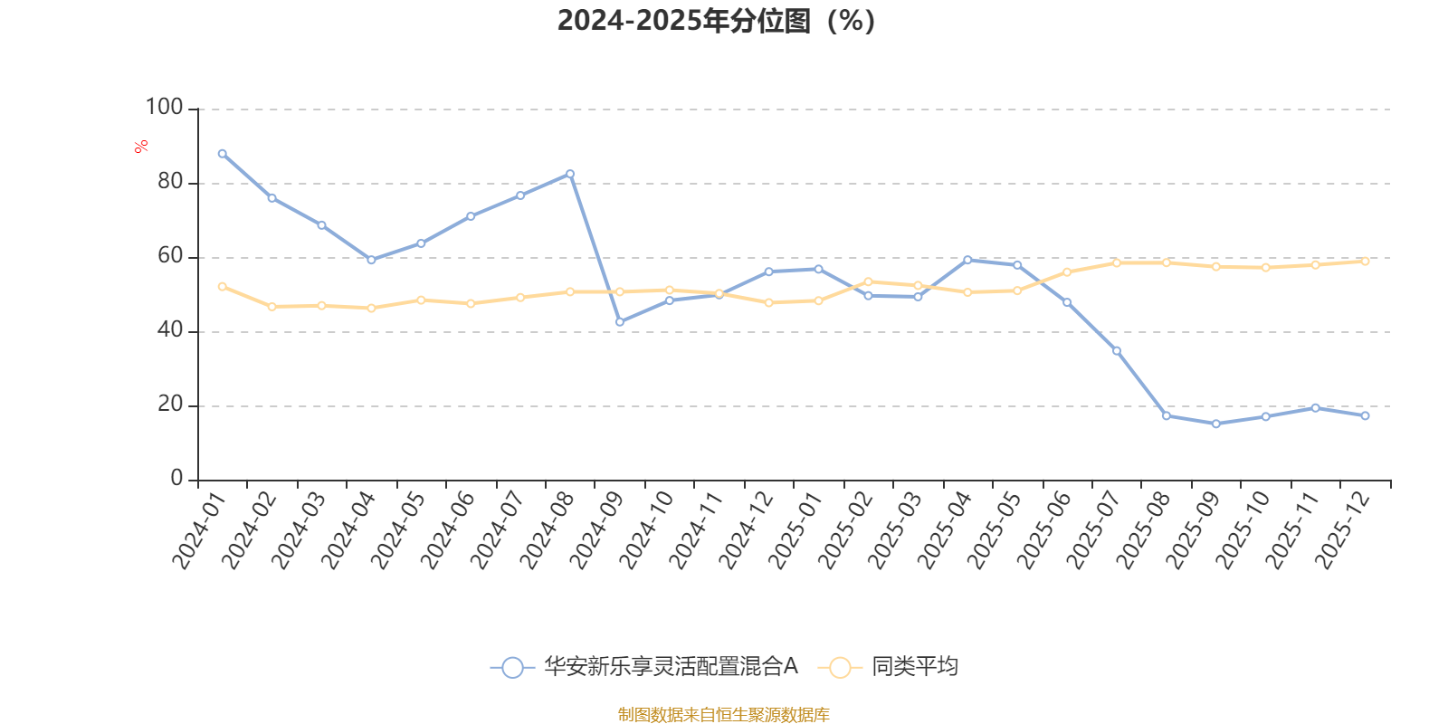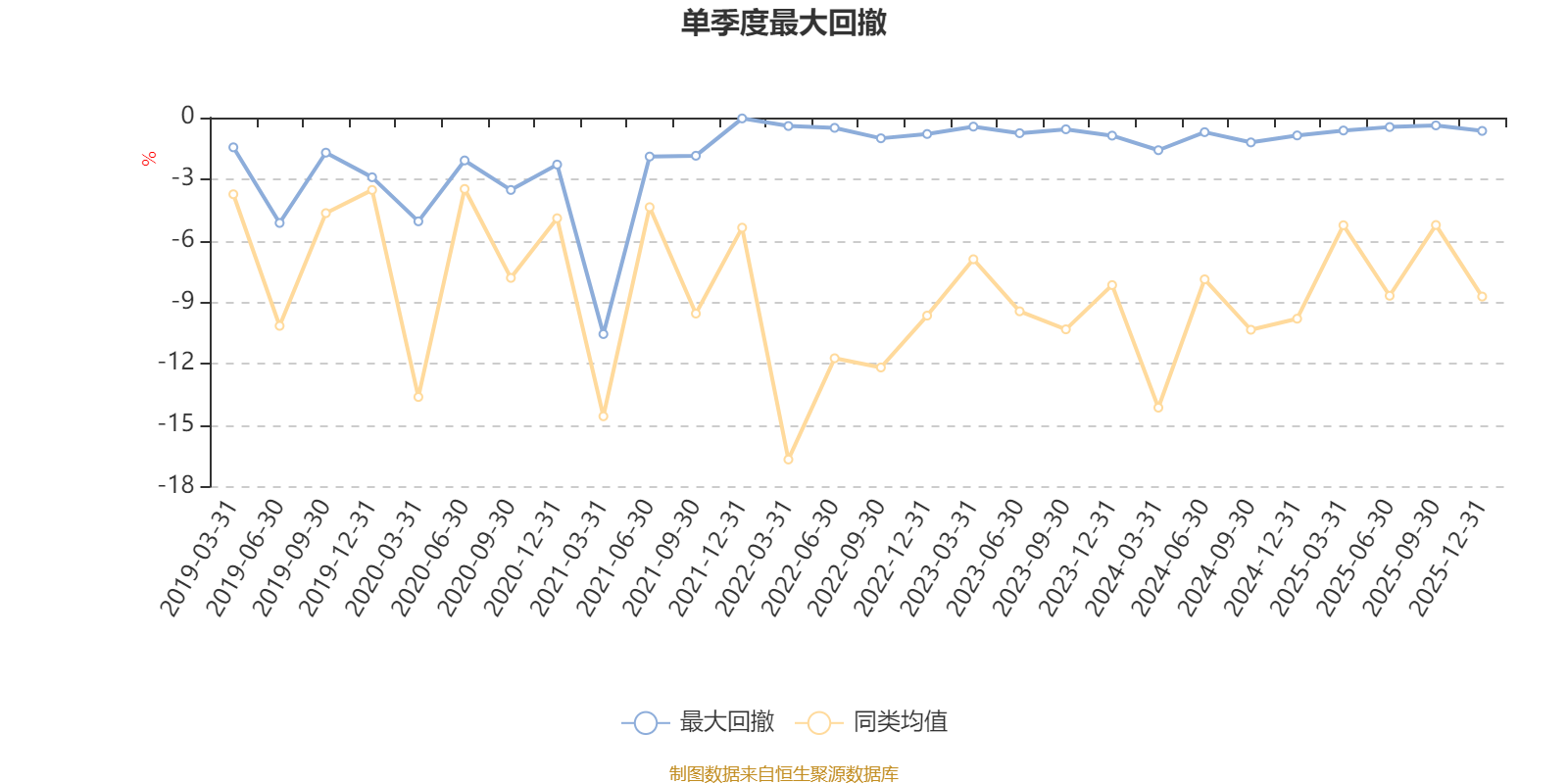 通过所选区间该基金净值增长率分位图,可以观察该基金与同类基金业绩比较情况。图为坐标原点到区间内某时点的净值增长率在同类基金中的分位数。