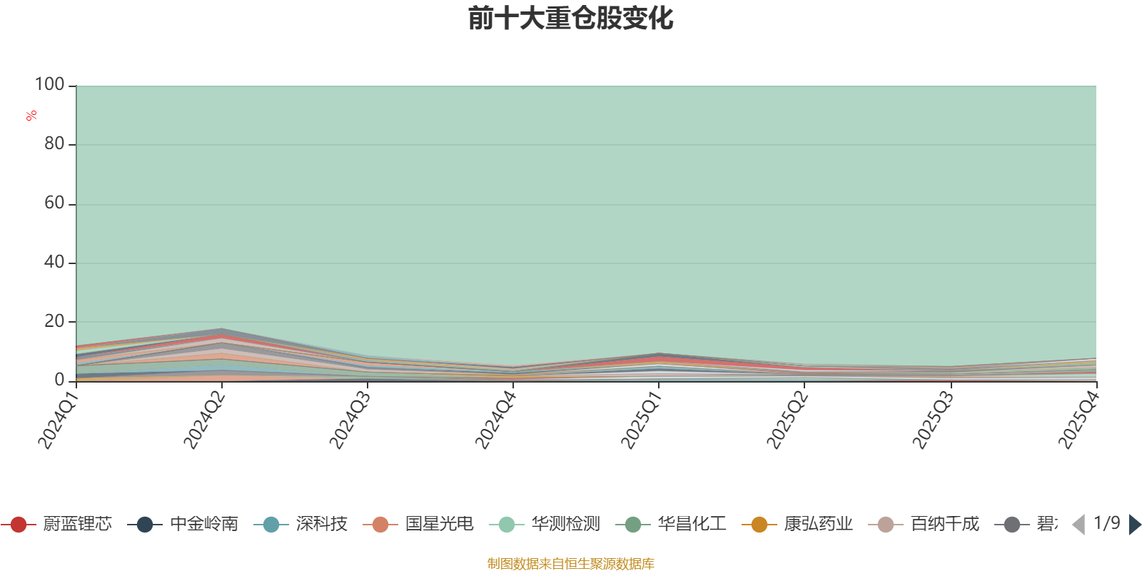 截至2025年四季度末,基金十大重仓股分别是北信源、源杰科技、国科微、大中矿业、鲁信创投、钒钛股份、康龙化成、百纳千成、长芯博创、金石资源。