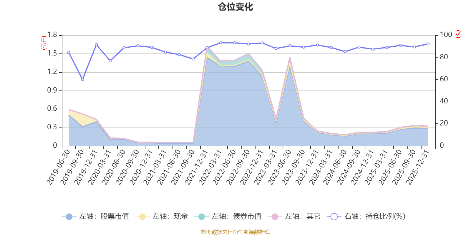 据定期报告数据统计,近三年平均股票仓位为89.25%,同类平均为84.04%。2022年一季度末基金达到93.22%的最高仓位,2019年三季度末最低,为59.98%。