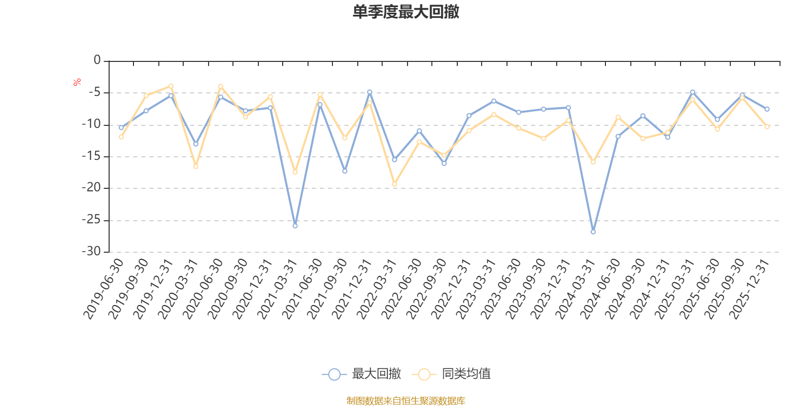 通过所选区间该基金净值增长率分位图,可以观察该基金与同类基金业绩比较情况。图为坐标原点到区间内某时点的净值增长率在同类基金中的分位数。