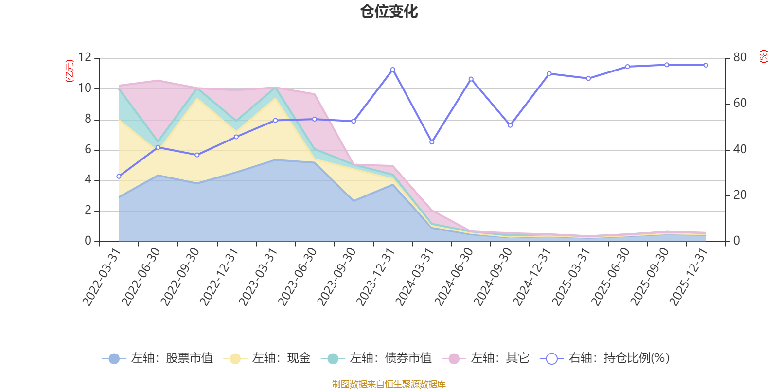 据定期报告数据统计,近三年平均股票仓位为64.53%,同类平均为67.52%。2025年三季度末基金达到77.18%的最高仓位,2022年一季度末最低,为28.42%。