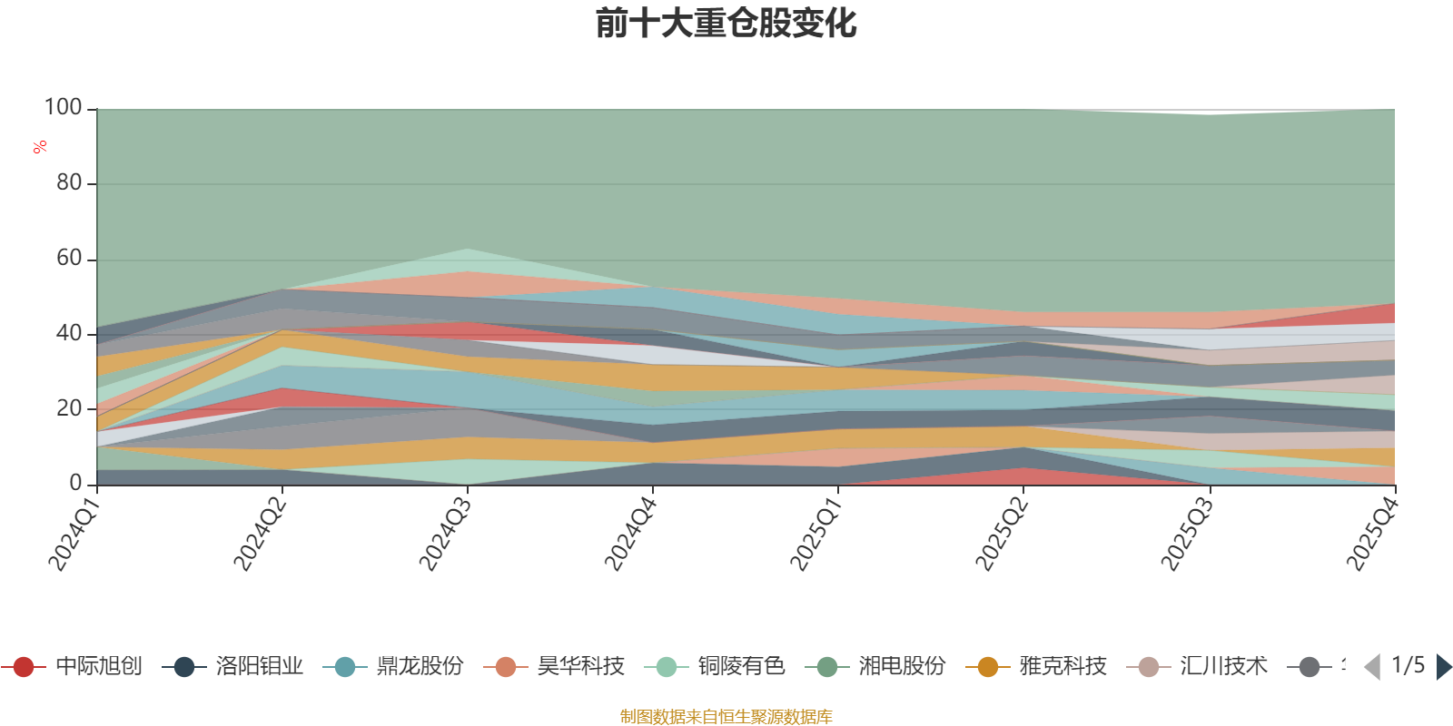 截至2025年四季度末,基金十大重仓股分别是安集科技、湖南黄金、腾讯控股、银轮股份、雅克科技、昊华科技、德赛西威、汇川技术、三花智控、中国巨石。
