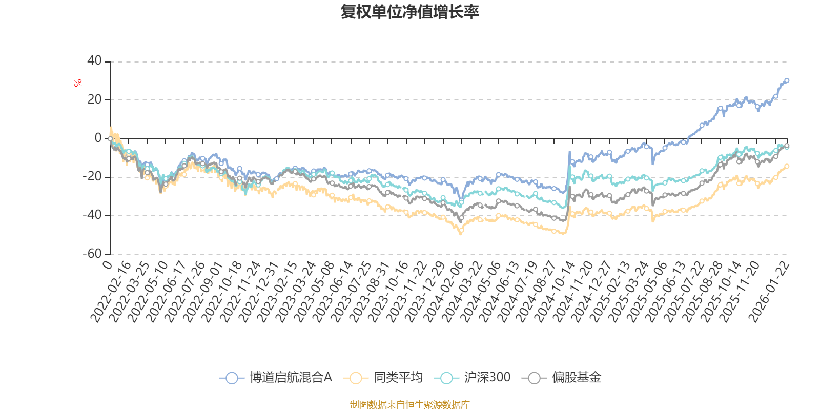 截至1月22日,博道启航混合A近三个月复权单位净值增长率为9.63%,位于同类可比基金308/621;近半年复权单位净值增长率为21.68%,位于同类可比基金366/621;近一年复权单位净值增长率为44.14%,位于同类可比基金256/613;近三年复权单位净值增长率为55.55%,位于同类可比基金53/535。