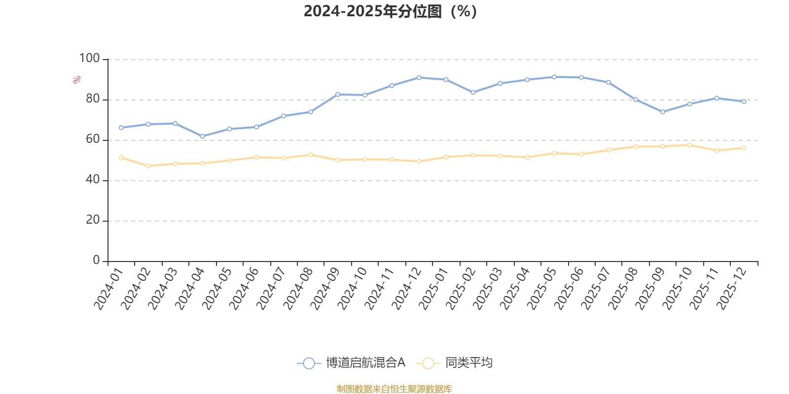 通过所选区间该基金净值增长率分位图,可以观察该基金与同类基金业绩比较情况。图为坐标原点到区间内某时点的净值增长率在同类基金中的分位数。