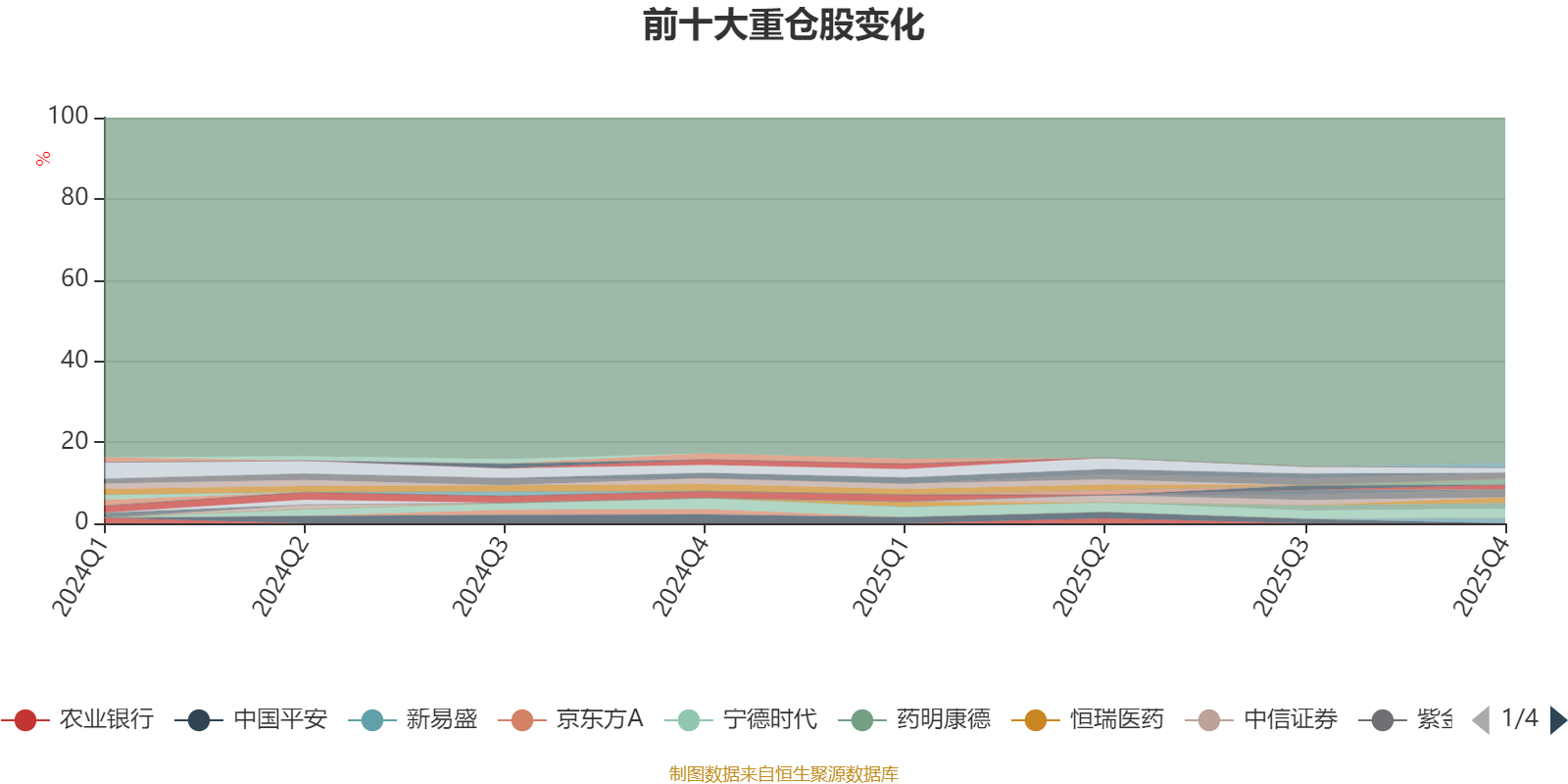截至2025年四季度末,基金十大重仓股分别是宁德时代、紫金矿业、立讯精密、招商银行、恒瑞医药、药明康德、新易盛、贵州茅台、洛阳钼业、美的集团。