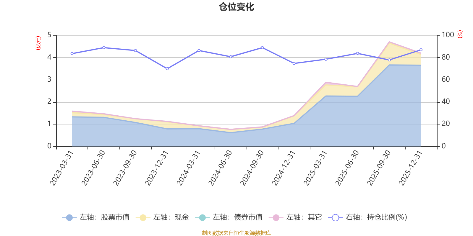 据定期报告数据统计,近三年平均股票仓位为82.27%,同类平均为87.15%。2023年上半年末基金达到88.99%的最高仓位,2023年末最低,为70.01%。