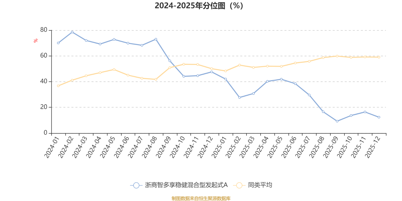 通过所选区间该基金净值增长率分位图,可以观察该基金与同类基金业绩比较情况。图为坐标原点到区间内某时点的净值增长率在同类基金中的分位数。