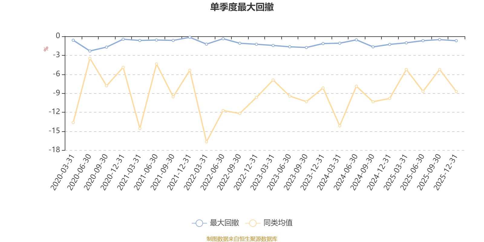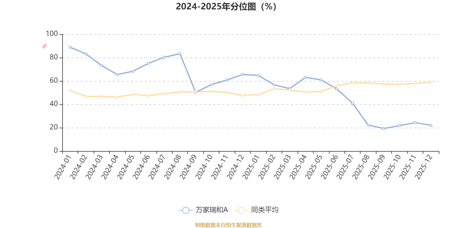 通过所选区间该基金净值增长率分位图,可以观察该基金与同类基金业绩比较情况。图为坐标原点到区间内某时点的净值增长率在同类基金中的分位数。