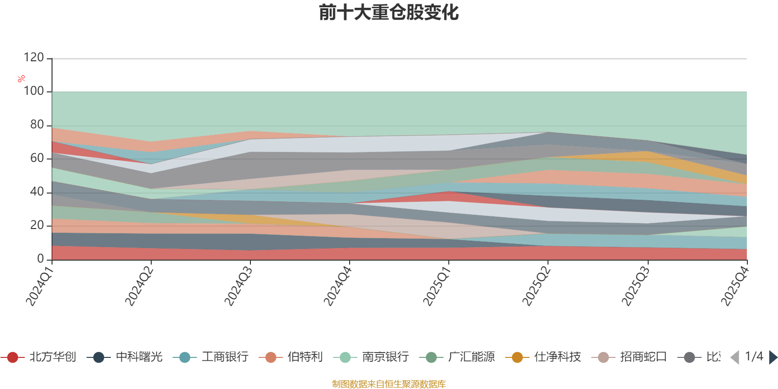 该基金持股集中度较高,近2年前十大重仓股集中度长期超过60%。截至2025年四季度末,基金十大重仓股分别是紫金矿业、工商银行、金山办公、南京银行、北方华创、科大讯飞、沪电股份、恒瑞医药、拉卡拉、协创数据。