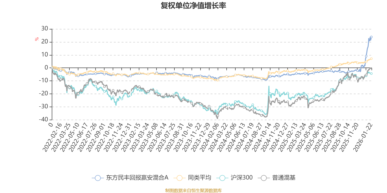 截至1月22日,东方民丰回报赢安混合A近三个月复权单位净值增长率为27.54%,位于同类可比基金1/629;近半年复权单位净值增长率为26.68%,位于同类可比基金8/629;近一年复权单位净值增长率为30.70%,位于同类可比基金15/626;近三年复权单位净值增长率为30.04%,位于同类可比基金31/564。