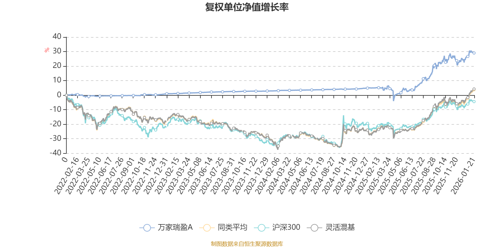 截至1月21日,万家瑞盈A近三个月复权单位净值增长率为3.58%,位于同类可比基金914/1286;近半年复权单位净值增长率为16.86%,位于同类可比基金771/1286;近一年复权单位净值增长率为22.90%,位于同类可比基金844/1286;近三年复权单位净值增长率为27.73%,位于同类可比基金410/1286。