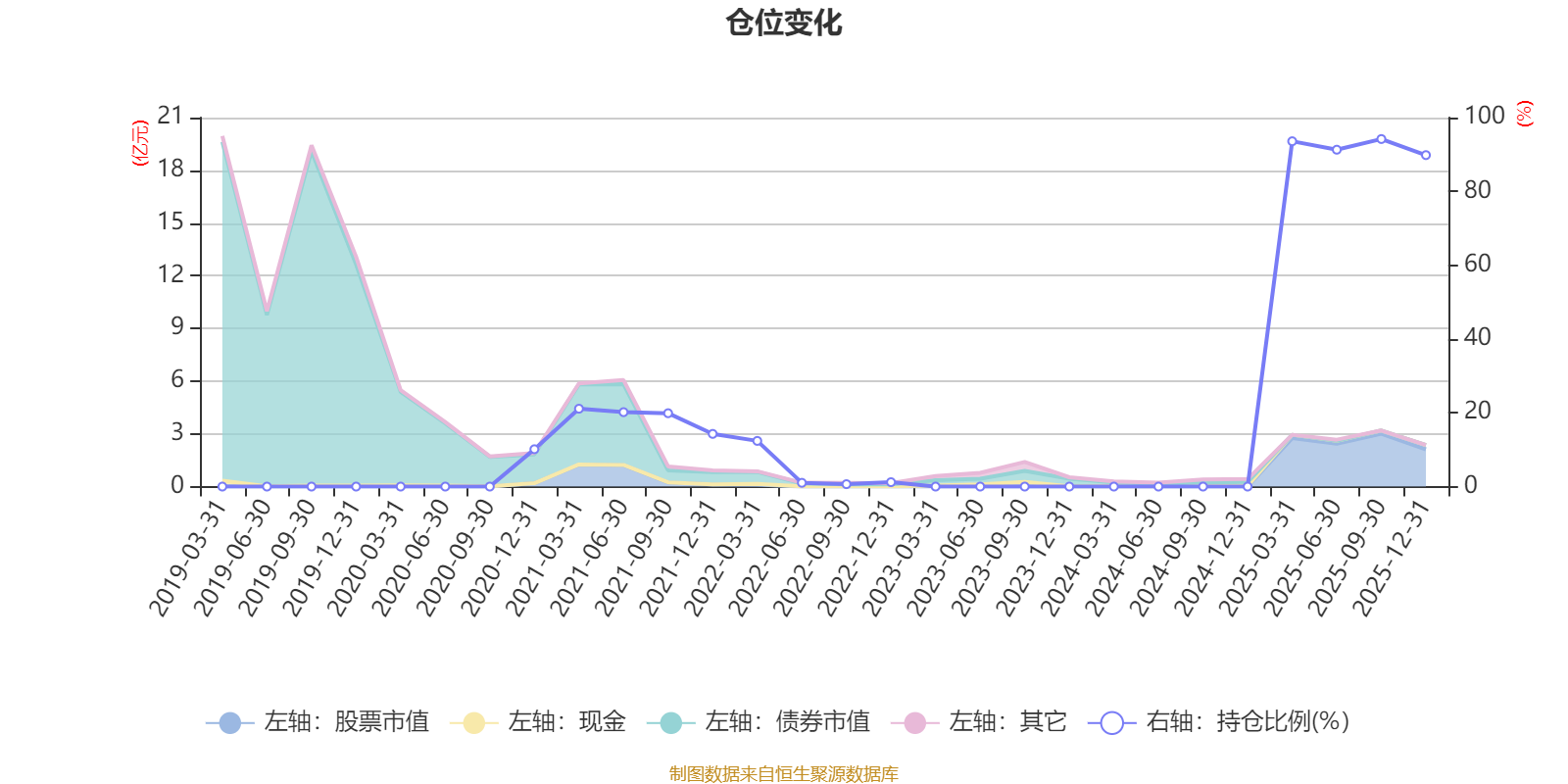 据定期报告数据统计,近三年平均股票仓位为30.74%,同类平均为72.57%。2025年三季度末基金达到94.19%的最高仓位,2022年三季度末最低,为0.65%。
