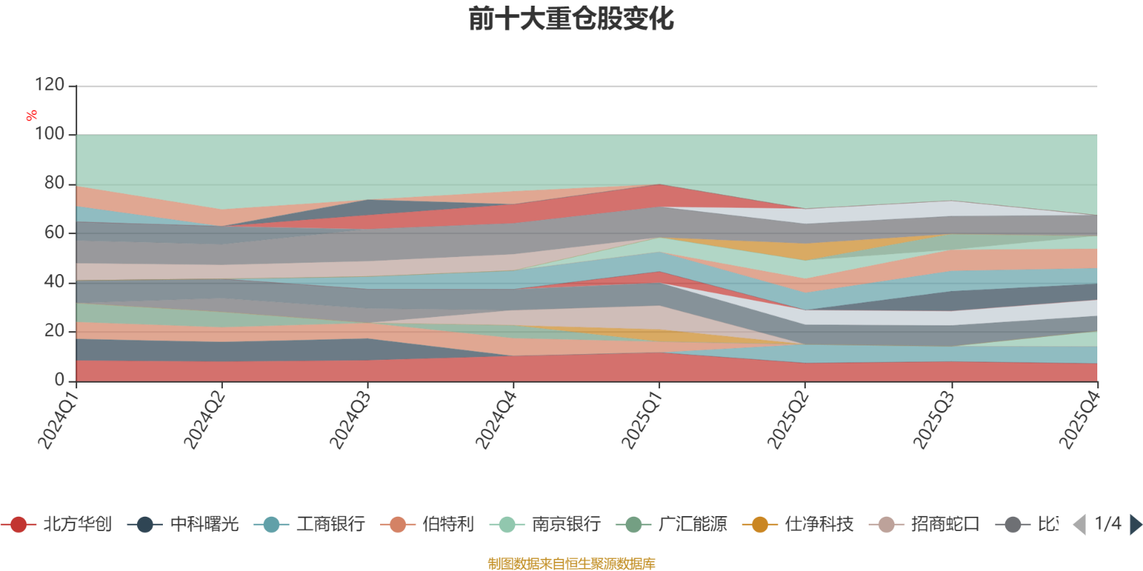 该基金持股集中度较高,近2年前十大重仓股集中度长期超过60%。截至2025年四季度末,基金十大重仓股分别是金山办公、紫金矿业、北方华创、工商银行、福昕软件、沪电股份、恒瑞医药、南京银行、科大讯飞、新易盛。