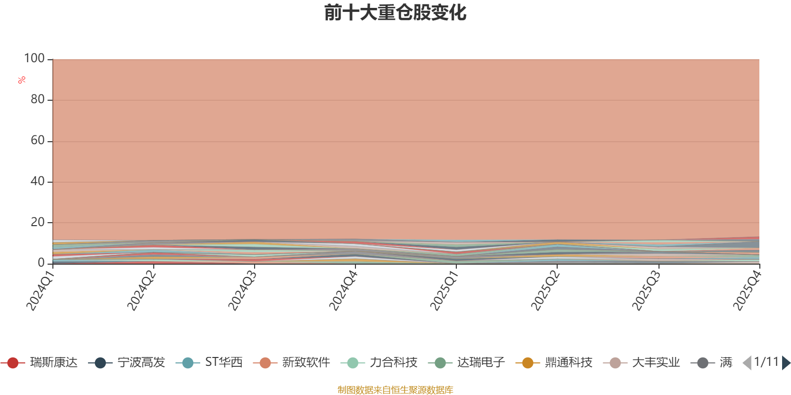 截至2025年四季度末,基金十大重仓股分别是嘉美包装、华伍股份、菱电电控、通达股份、华茂股份、翰博高新、智莱科技、大丰实业、南京聚隆、普蕊斯。