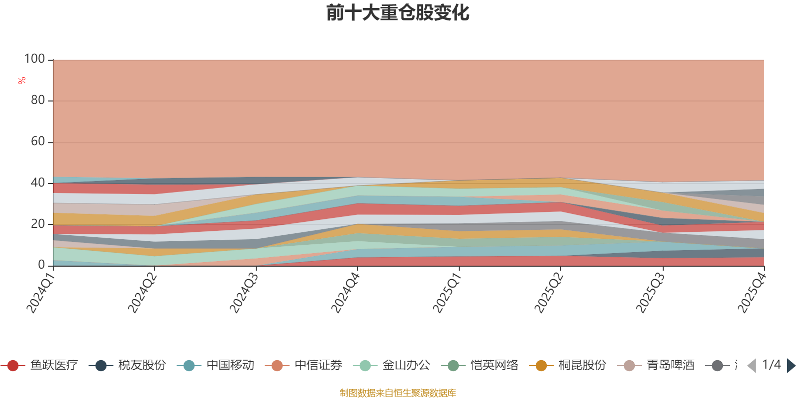 截至2025年四季度末,基金十大重仓股分别是中国平安、瀚蓝环境、税友股份、紫金矿业、巨人网络、宁德时代、鱼跃医疗、伊利股份、华能国际、分众传媒。