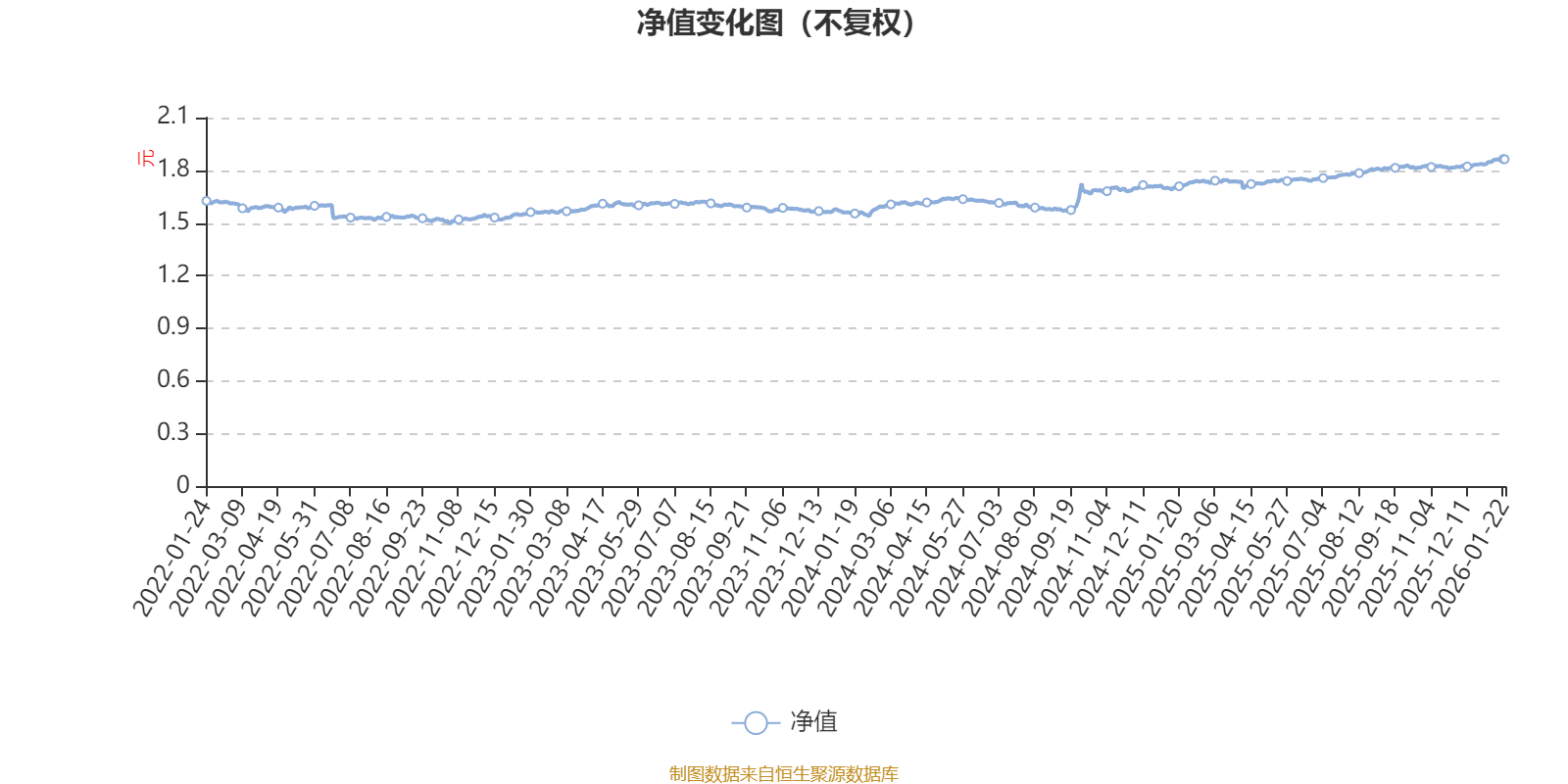 截至1月21日,基金近三年最大回撤为5.02%,同类可比基金排名194/526。单季度最大回撤出现在2022年一季度,为3.81%。