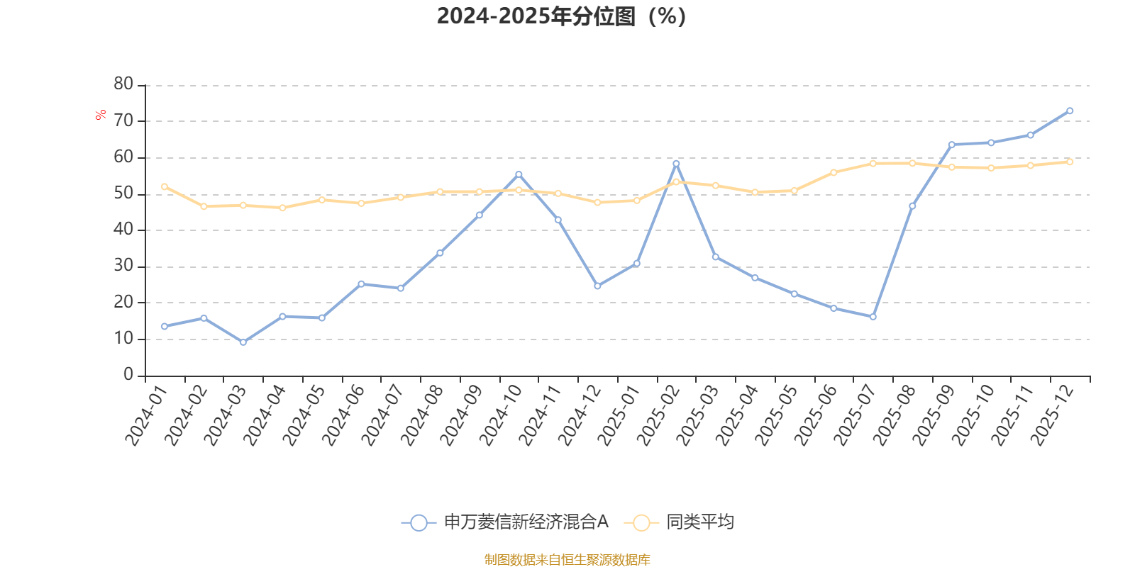通过所选区间该基金净值增长率分位图,可以观察该基金与同类基金业绩比较情况。图为坐标原点到区间内某时点的净值增长率在同类基金中的分位数。