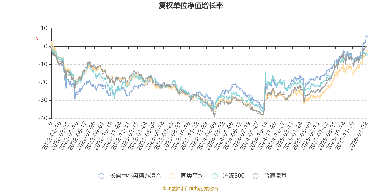 截至1月22日,长盛中小盘精选混合近三个月复权单位净值增长率为11.19%,位于同类可比基金47/134;近半年复权单位净值增长率为21.24%,位于同类可比基金60/134;近一年复权单位净值增长率为35.14%,位于同类可比基金46/131;近三年复权单位净值增长率为37.39%,位于同类可比基金21/124。