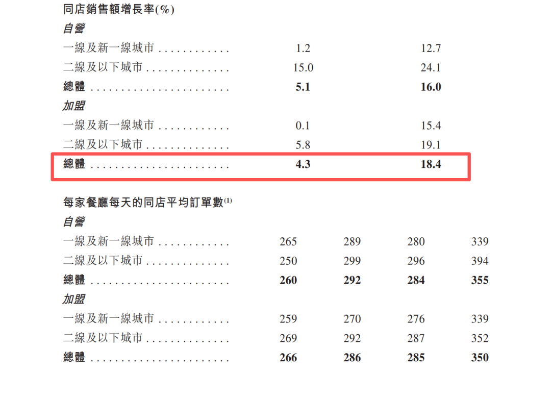加盟店表现同样亮眼,同店销售额2024年同比增长4.3%,2025年前三季度同比增长18.4%。值得注意的是,在同店每单平均消费额略有下降的背景下,订单量的稳步增长成为带动整体销售额提升的核心动力,印证了其平价策略对客流的拉动效果。