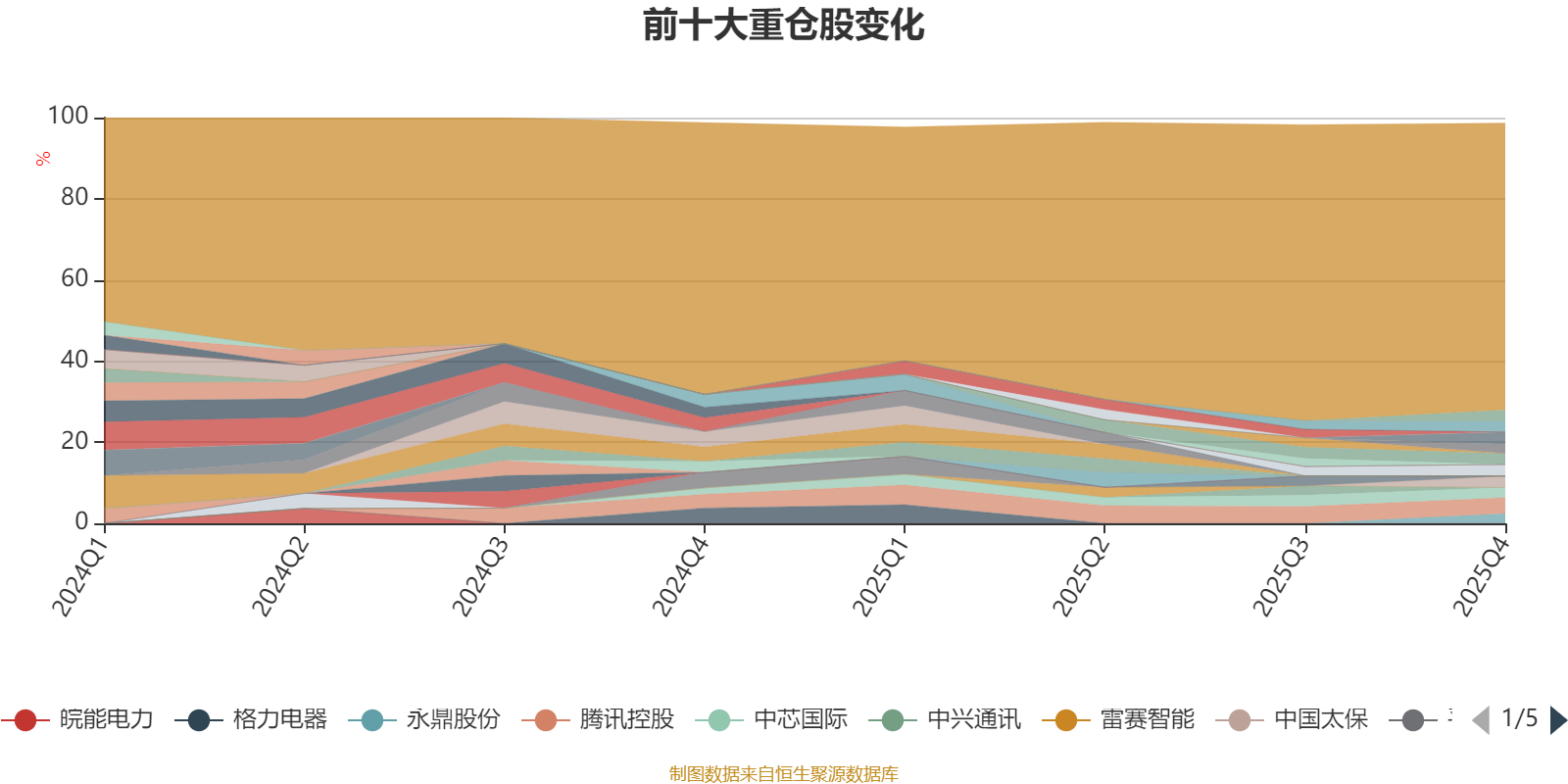 截至2025年四季度末,基金十大重仓股分别是腾讯控股、巨人网络、中国太保、寒武纪、赤峰黄金、兆易创新、紫金矿业、中芯国际、永鼎股份、比亚迪。