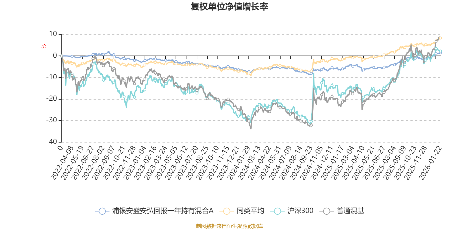 截至1月22日,浦银安盛安弘回报一年持有混合A近三个月复权单位净值增长率为2.42%,位于同类可比基金272/629;近半年复权单位净值增长率为5.88%,位于同类可比基金207/629;近一年复权单位净值增长率为7.80%,位于同类可比基金309/626;近三年复权单位净值增长率为2.88%,位于同类可比基金502/564。