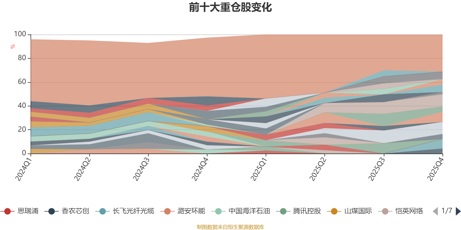 截至2025年四季度末,基金十大重仓股分别是中际旭创、新易盛、东山精密、长飞光纤光缆、长芯博创、深南电路、源杰科技、工业富联、香农芯创、天孚通信。