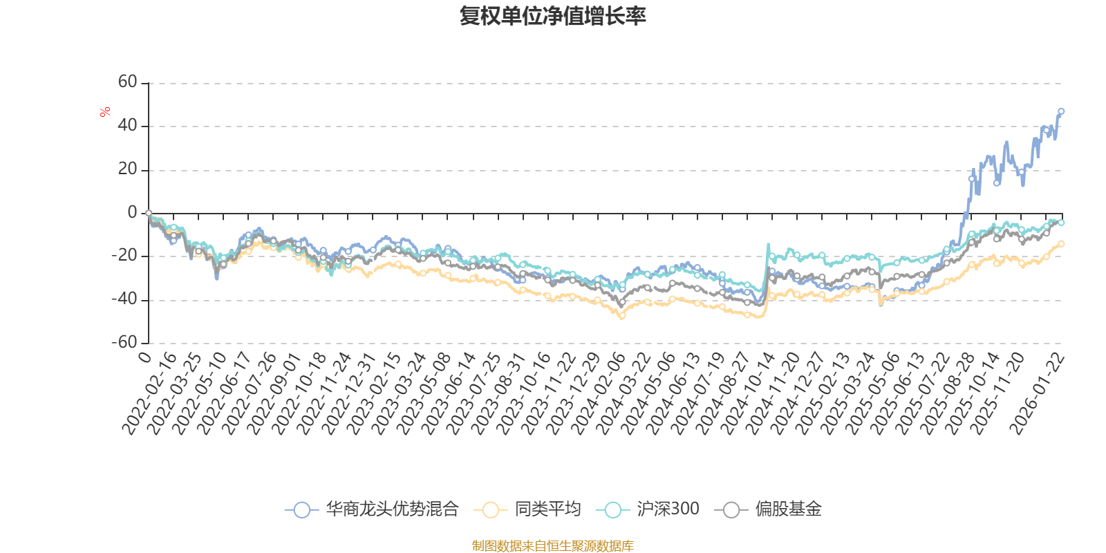 截至1月22日,华商龙头优势混合近三个月复权单位净值增长率为20.85%,位于同类可比基金72/689;近半年复权单位净值增长率为79.06%,位于同类可比基金8/689;近一年复权单位净值增长率为125.15%,位于同类可比基金3/673;近三年复权单位净值增长率为64.05%,位于同类可比基金22/396。