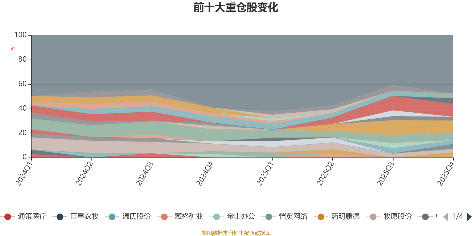 截至2025年四季度末,基金十大重仓股分别是中际旭创、新易盛、万华化学、云铝股份、药明康德、景旺电子、中国铝业、兴业银锡、新泉股份、牧原股份。