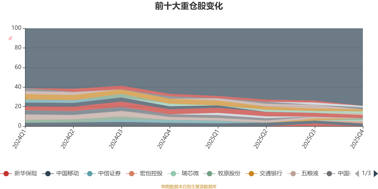 截至2025年四季度末,基金十大重仓股分别是中国移动、三环集团、中国海油、美的集团、宏创控股、牧原股份、宁德时代、洛阳钼业、盐湖股份、瑞芯微。