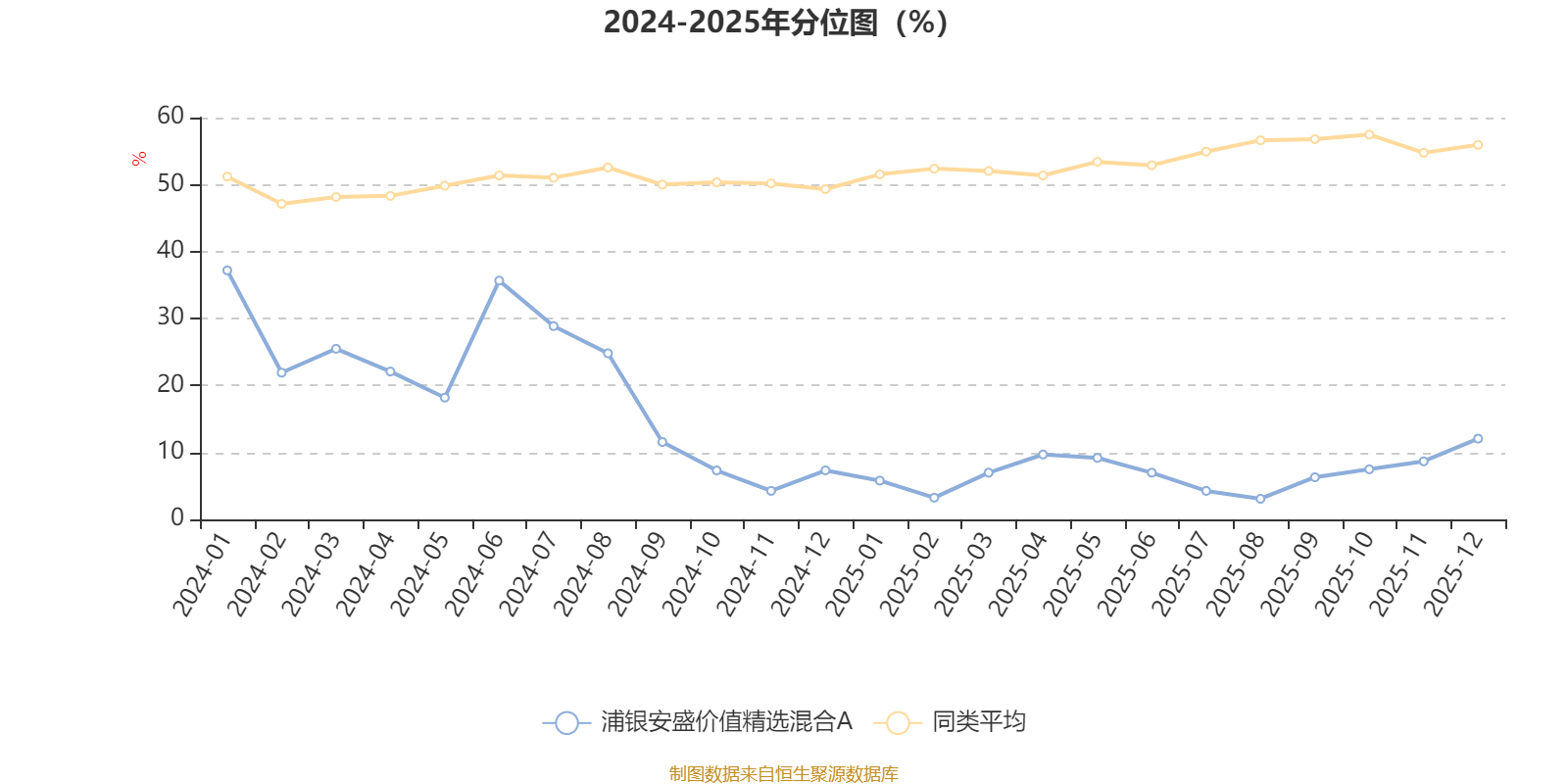 通过所选区间该基金净值增长率分位图,可以观察该基金与同类基金业绩比较情况。图为坐标原点到区间内某时点的净值增长率在同类基金中的分位数。