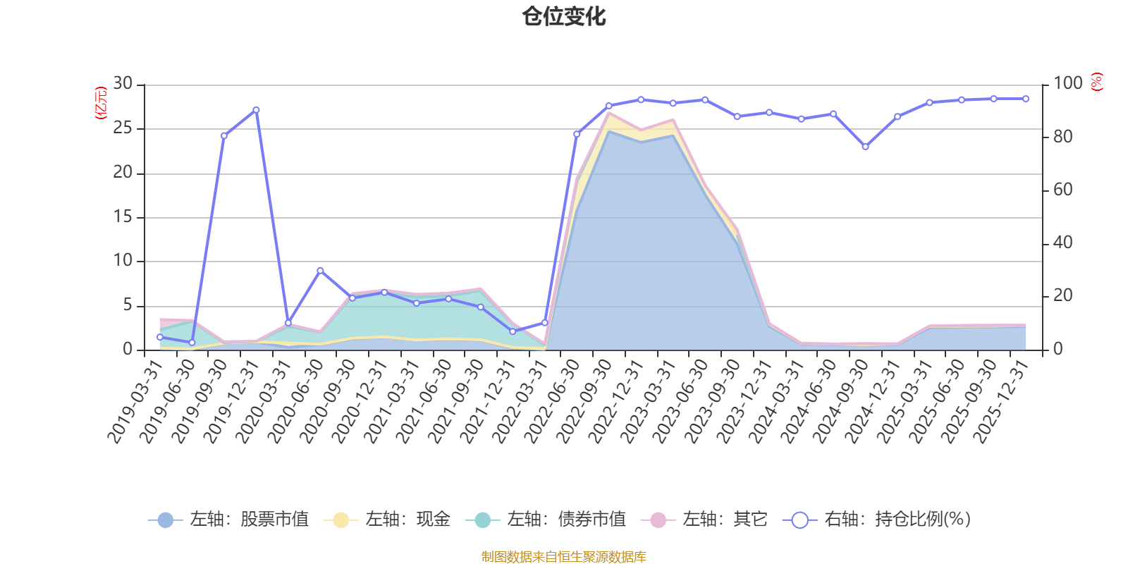 据定期报告数据统计,近三年平均股票仓位为90.18%,同类平均为72.57%。2025年三季度末基金达到94.67%的最高仓位,2019年上半年末最低,为2.82%。