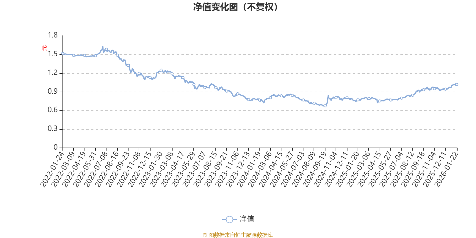 截至1月22日,基金近三年最大回撤为44.75%,同类可比基金排名1076/1263。单季度最大回撤出现在2023年四季度,为17.28%。