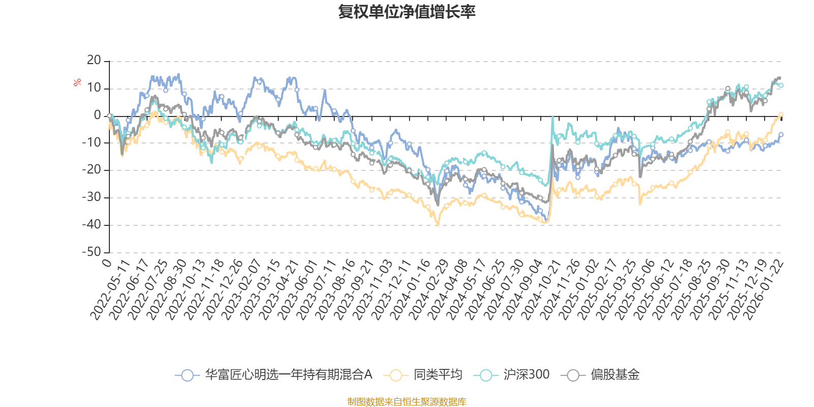 截至1月22日,华富匠心明选一年持有期混合A近三个月复权单位净值增长率为3.95%,位于同类可比基金522/689;近半年复权单位净值增长率为4.12%,位于同类可比基金623/689;近一年复权单位净值增长率为9.81%,位于同类可比基金642/673;近三年复权单位净值增长率为-18.17%,位于同类可比基金361/396。