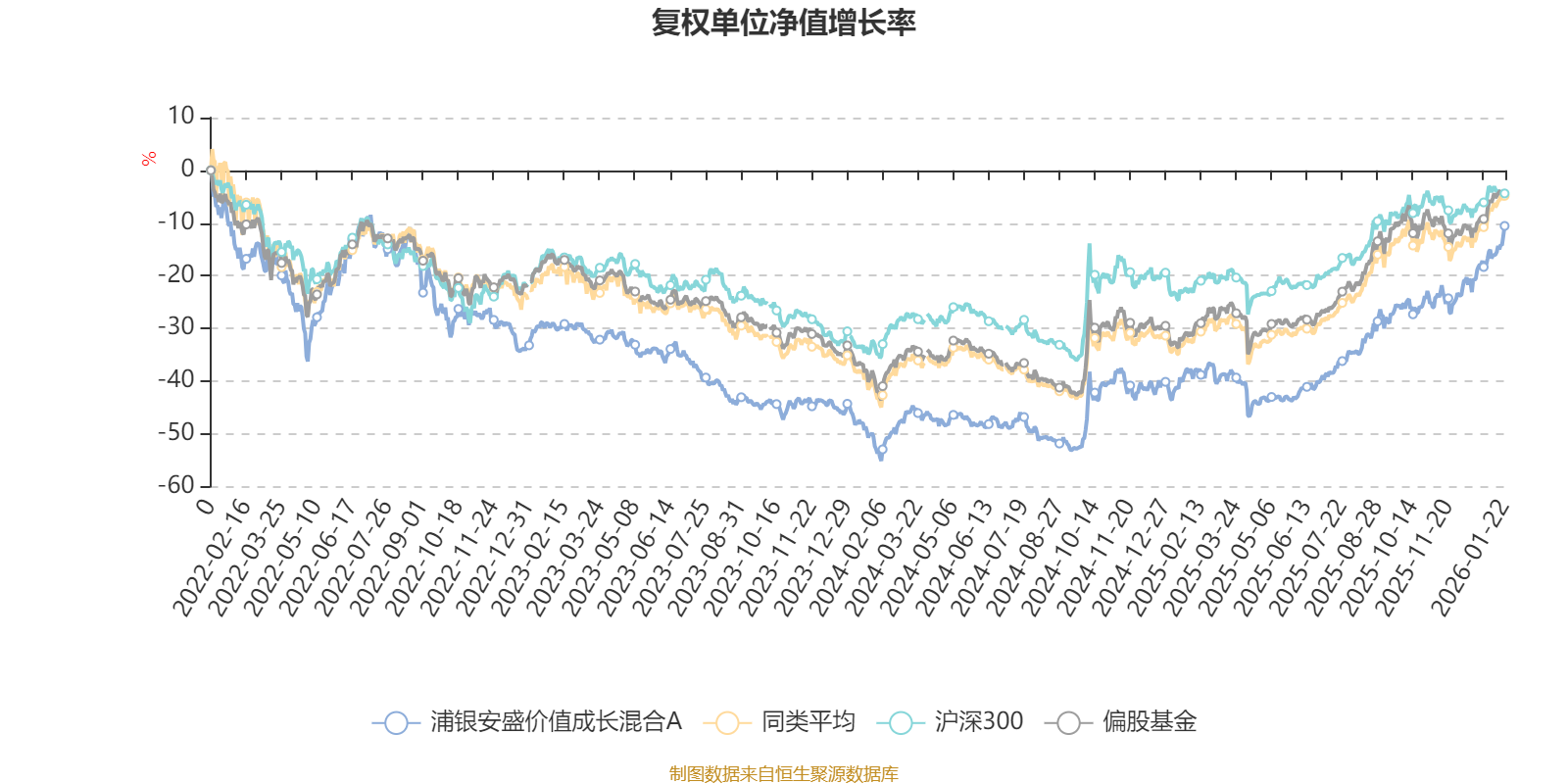 截至1月22日,浦银安盛价值成长混合A近三个月复权单位净值增长率为20.93%,位于同类可比基金15/265;近半年复权单位净值增长率为40.18%,位于同类可比基金43/265;近一年复权单位净值增长率为43.70%,位于同类可比基金107/265;近三年复权单位净值增长率为25.97%,位于同类可比基金93/256。